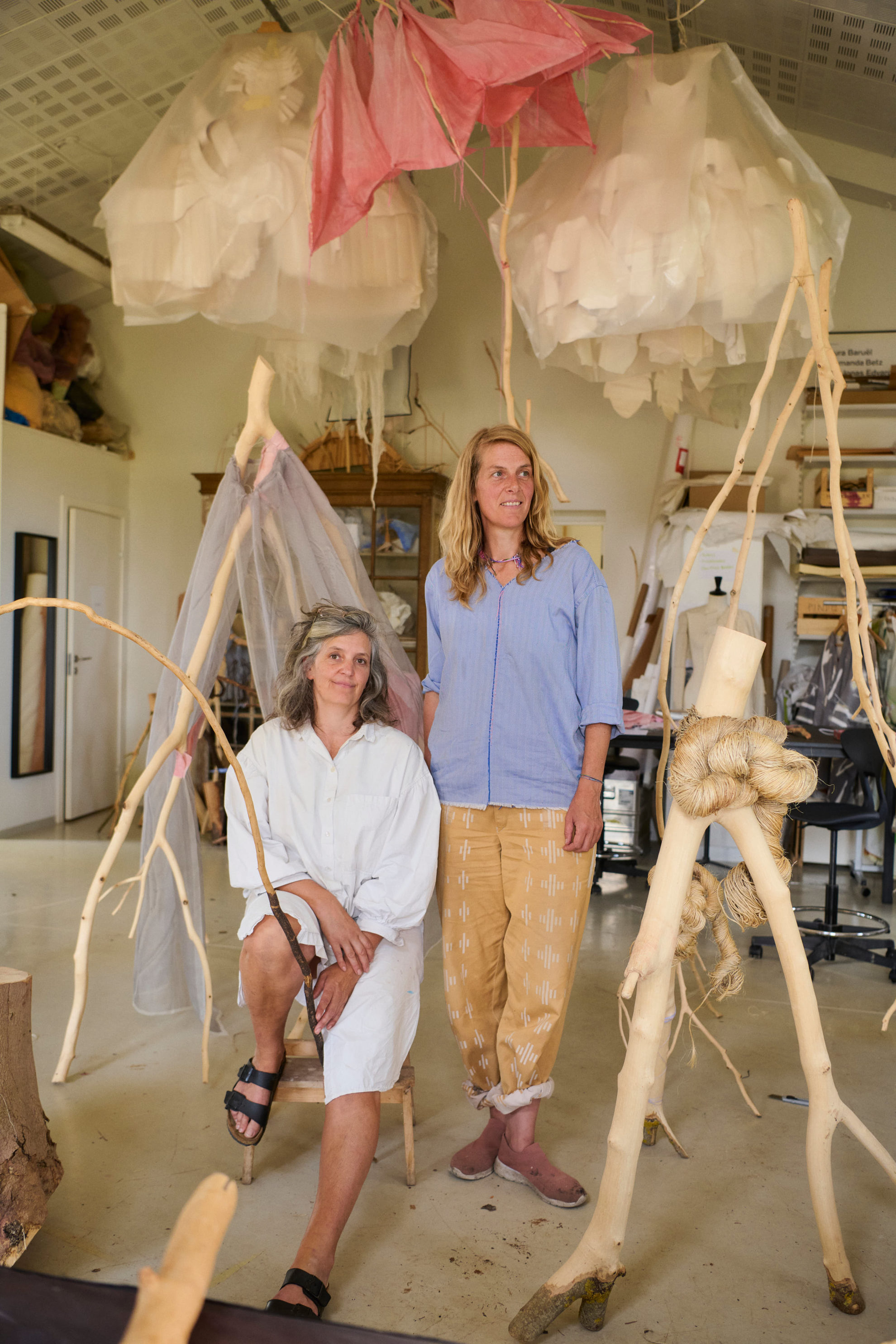 Surrounded by the forests, fields, animals and sea of the southern Danish island of Møn, the studio of architect Cecilie Bendixen and designer Laura Baruël acts as a hub for a practice in constant collaboration with nature. Together, Bendixen & Baruël explore the potential of raw bio-gene materials through immersive spatial designs and conceptual installations that encourage learning and connection. The dynamic qualities of textiles feature as a strong element throughout their body of work – a tensile yet flexible material that moves with the wind and encourages interaction through tactility. Textile is combined with structural materials – with an increasing fascination in the unique qualities of wild tree branches and living trees whose strong angles, curves and knots bring an unpredictability to their work while connecting each project with the environment in which it was sourced and constructed. Approaching the challenges of our time through a sense of joy and an openness to the natural world, the work of Bendixen & Baruël aims to understand and emphasise the fantastic features of nature and transform under-appreciated resources into rich and complex objects and spaces to be admired and enjoyed.