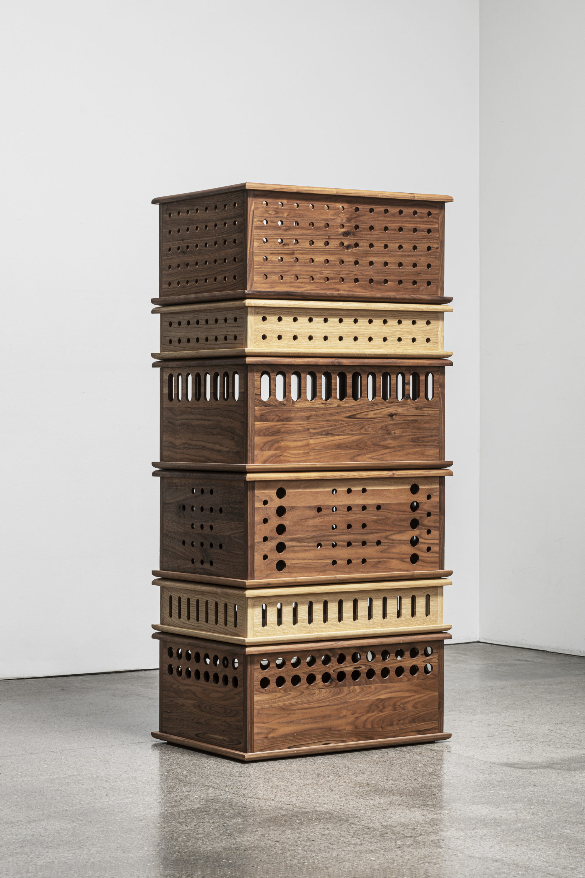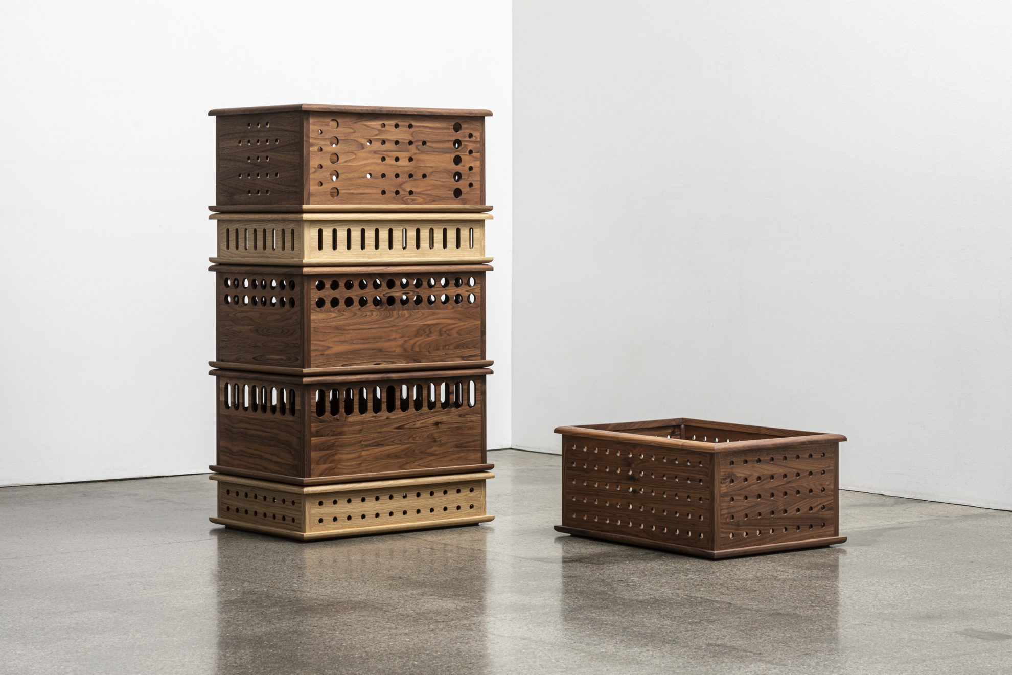 Dependables is a sculptural storage system inspired by the simple ritual of storing things. A box is the symbol of storing as a way of protecting and caring for our most precious belongings. The perforated sides of the Dependables gives a decorative appearance and allows us to have visual contact with the stored objects whilst being stacked away. Handcrafted details inside the box emphasizes the value of the stored objects as the rounded edges seem to shield them. A detail under the boxes makes an elegant stacking feature that can transform the simple boxes into a piece of sculptural and functional furniture.