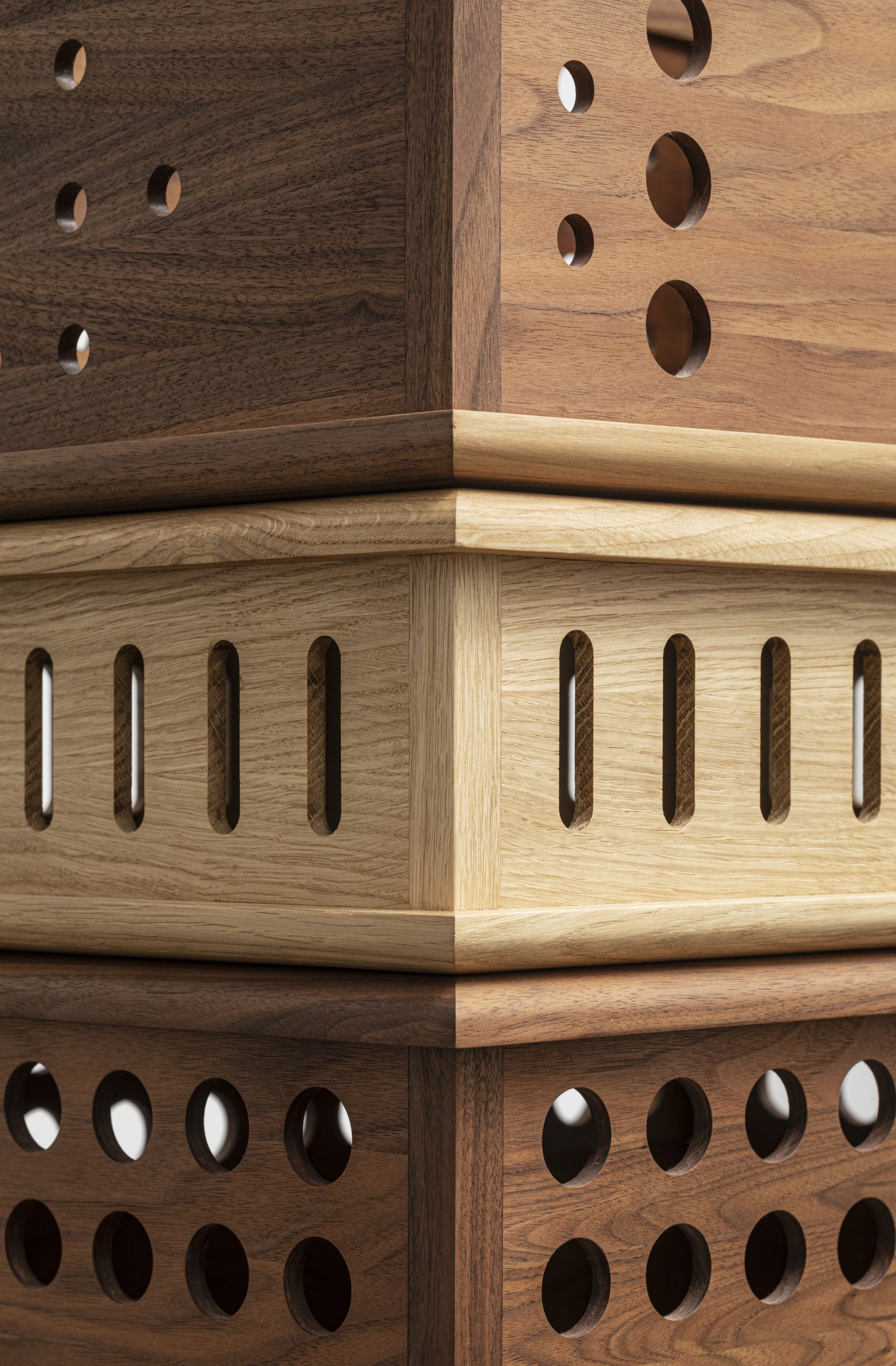 Inspired by the ritual of storing beloved things, Dependables is a unique box system made out of solid walnut and oak wood. With an elegant stacking feature the boxes can be transformed into a piece of sculptural and functional furniture. The boxes are crafted by hand, carefully giving every little detail full attention.