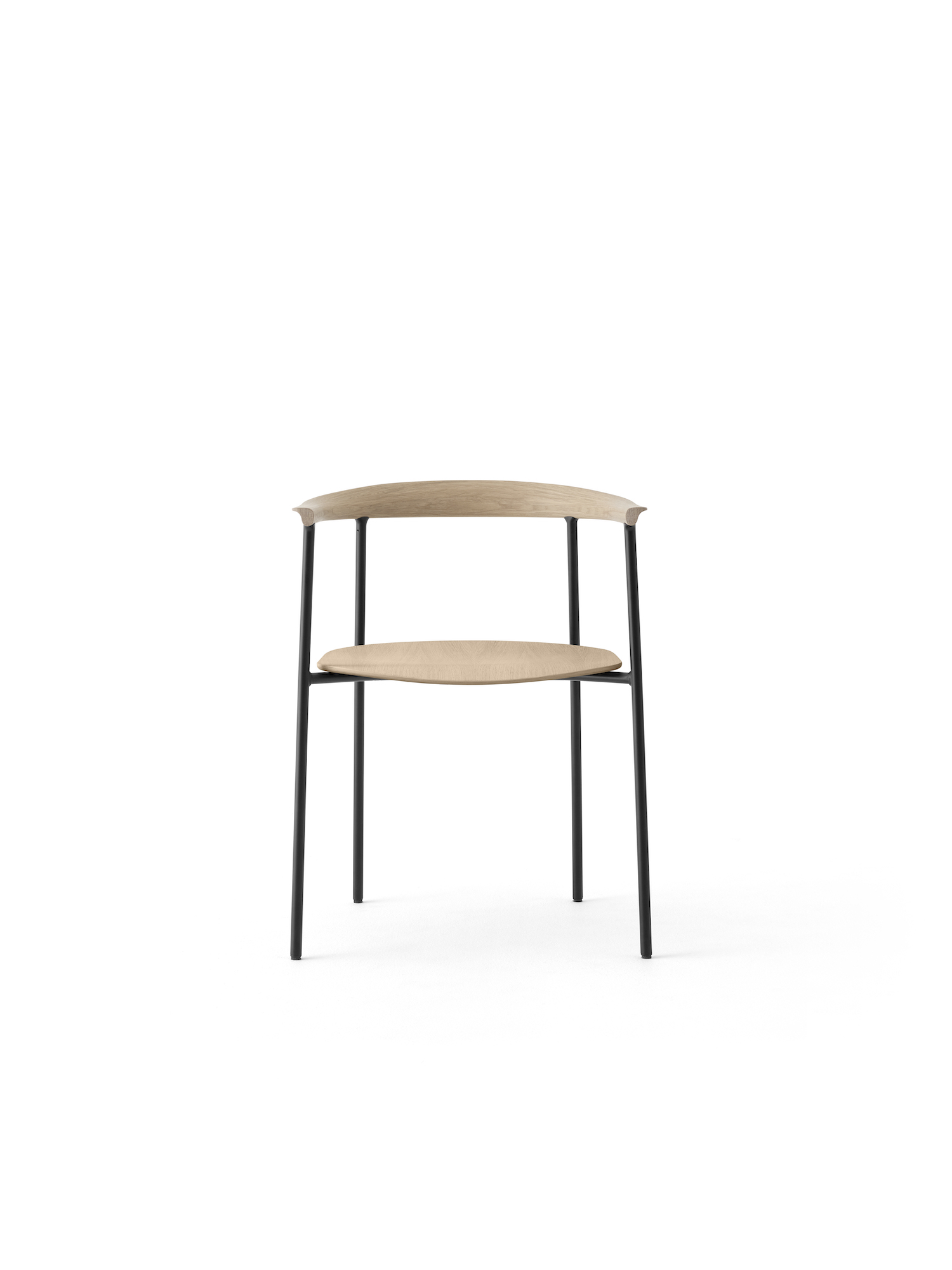 Arc Chair by Depping and Jørgensen for TAKT. A knock down chair that focuses on the detailing of a deformed steel tube where the various components meet. Photo Credit: Jakob Jørgensen.