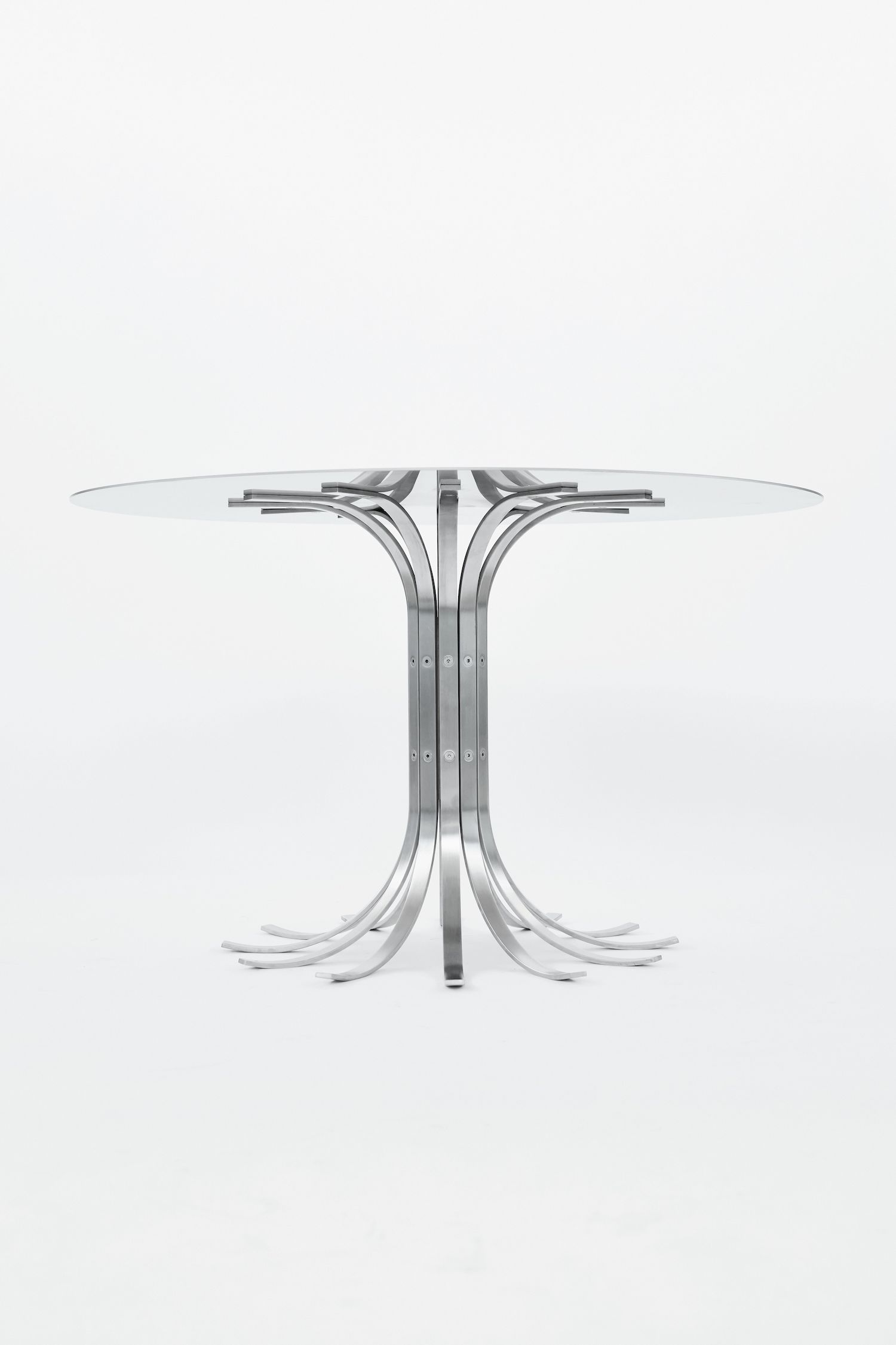 Basel Table by Maria Bruun. A sculptural dining table in polished steel. Produced for the exhibition Reflected Surroundings at Design Miami / Basel. Photo Credit: Benita Marcussen.